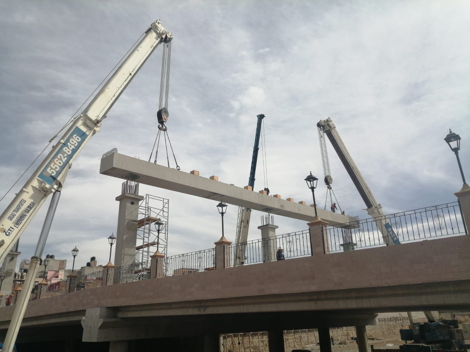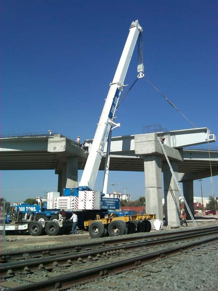 Montaje de vigas de acero de 50 metros de longitud y 60 toneladas de peso.