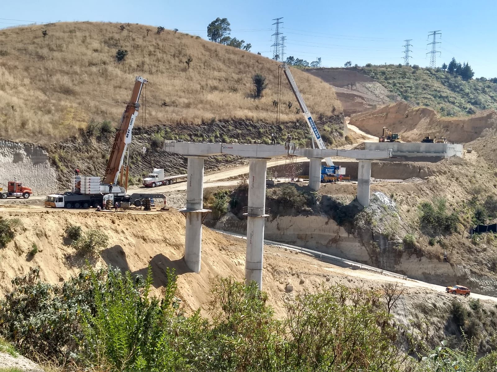 Montaje de vigas de concreto de 40 metros de longitud y 60 toneladas de peso.